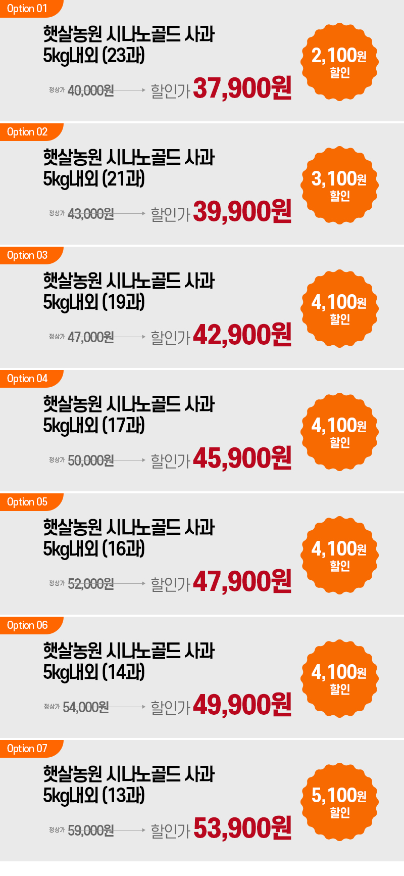 | 상품구성 | 5kg내외(23과,21과,19과,17과,16과,14과,13과) |