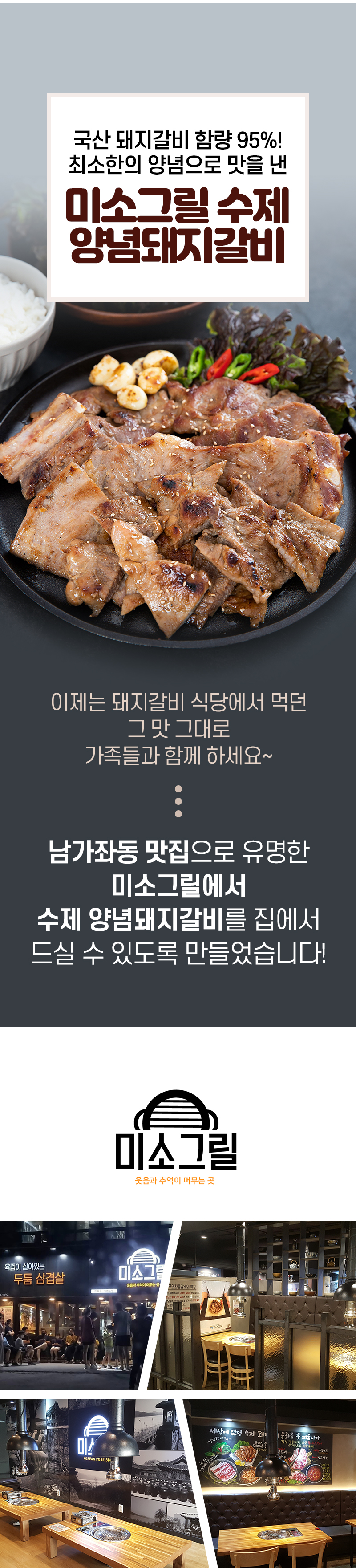| 제품명 | 미소그릴 국내산 수제 양념 돼지갈비 |
