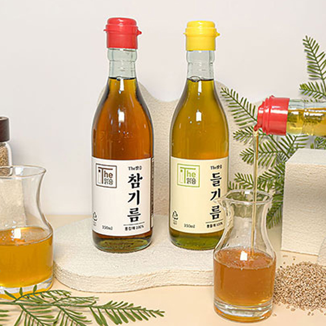 - home > 간식/음료/양념 > 면/잼/양념/오일 > 잼/오일/소스/장류 > The맑음 1회만 착유하는 저온압착 참기름/들기름(각350ml/외국산/중국산)선물세트+박스용포장