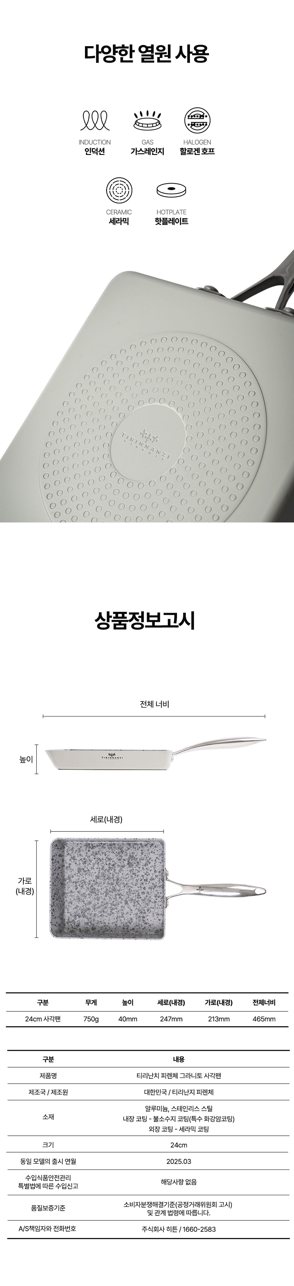품명 및 모델명 | 강력한 리얼 화강암 코팅! 티리난지 피렌체 그라니토 프라이팬/웍/커버 |
