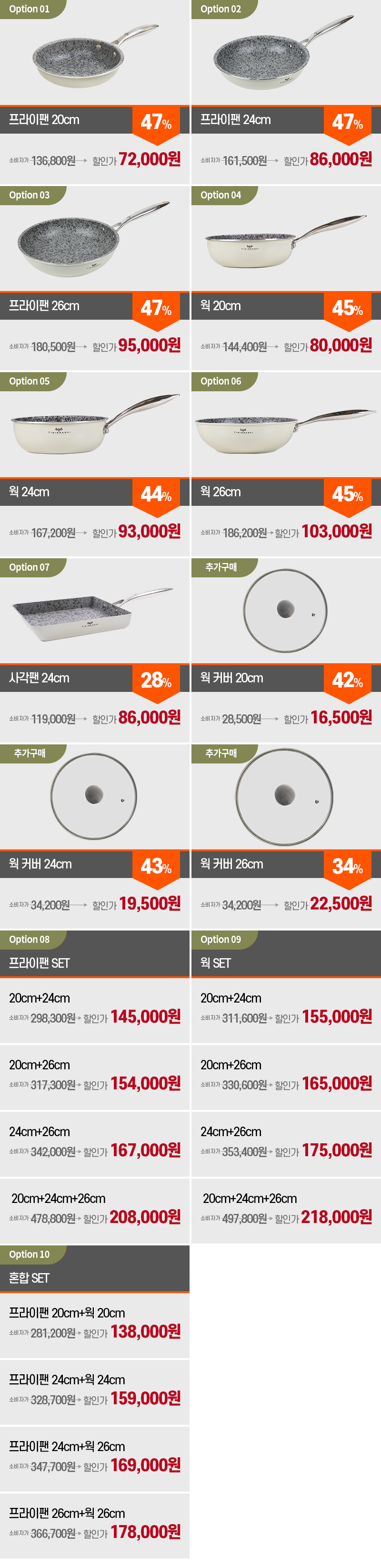 구성품 | 프라이팬/ 웍/ 사각팬/ 웍 커버 |