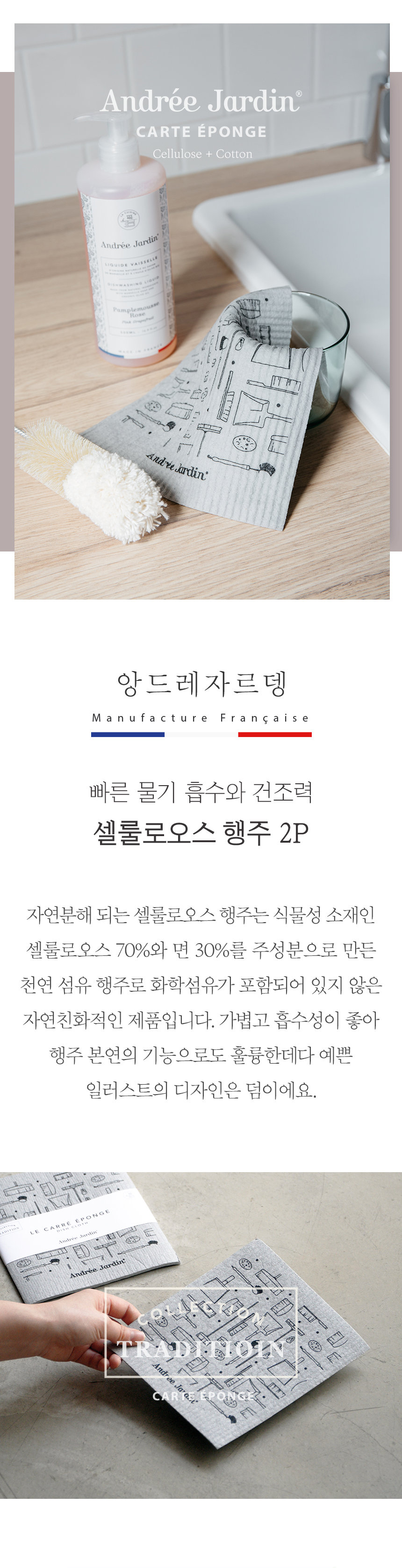 - home > 주방/생활 기획전 > 4만원이상 골라담기 > [문꼼꼼]프랑스 앙드레자르뎅 빨아쓰는 천연 셀룰로오스 행주 2P