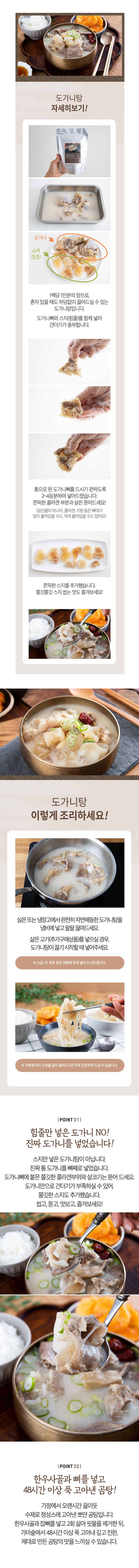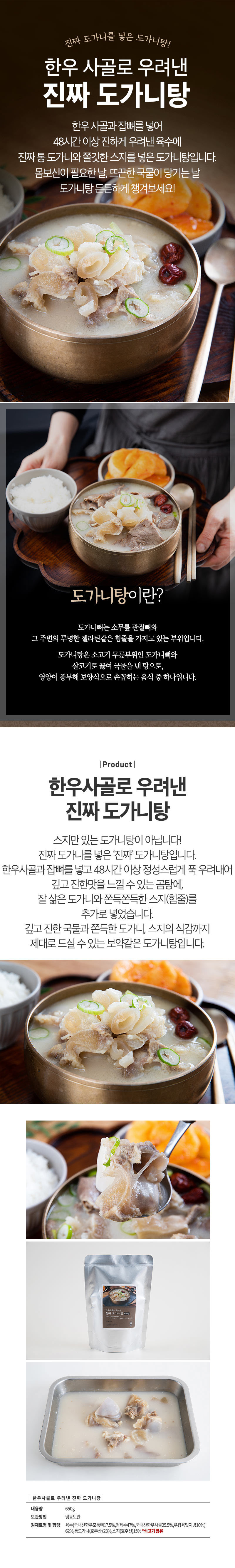 | 원재료명 및 함량 | 육수(국내산한우모둠뼈 17.5%, 정제수47%, 국내산 한우사골25.5%, 우잡육및지방10%)62%, 통도가니(호주산)23%, 스지(호주산)15% *쇠고기 함유 |