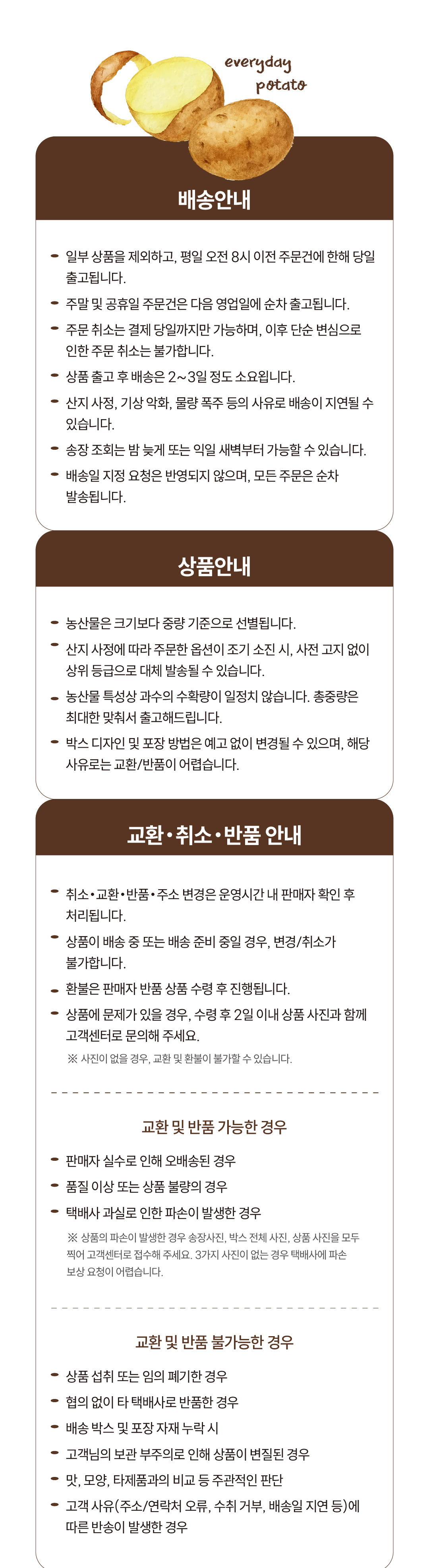 ※ 농산물 특성상 입고날짜,날씨,농가 수확 상황에 따라 3~4일 정도 출고 지연이 있을 수 있사오니 이 점 참고 부탁드립니다.