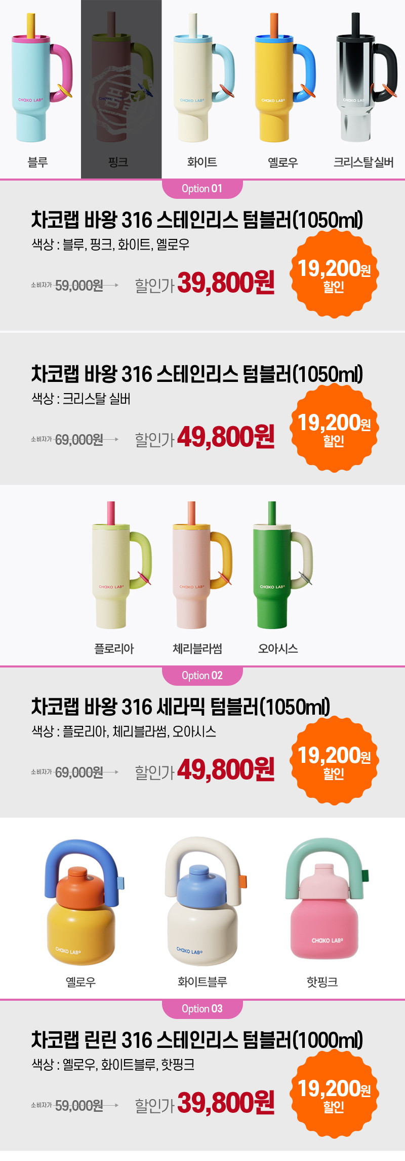 색상 | 스테인리스 텀블러 블루,핑크,화이트,옐로우,크리스탈 실버 스테인리스 세라믹 텀블러 플로리아,체리블라썸,오아시스 린린 텀블러 옐로우,화이트블루,핫핑크 |