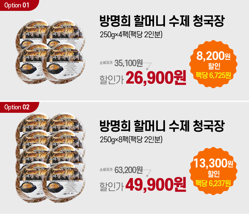 ※ 청국장은 냉동으로 발송되지만 배송도중 자연해동됩니다. 수령 후 바로 냉동보관하시면 품질에는 문제가 없으나, 해동 배송이 불편하신 분께서는 신중한 구매 부탁드립니다.