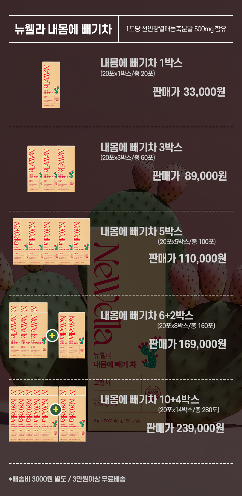 뉴웰라 내몸에 빼기차 (1포당 선인장열매농축분말 500mg 함유)