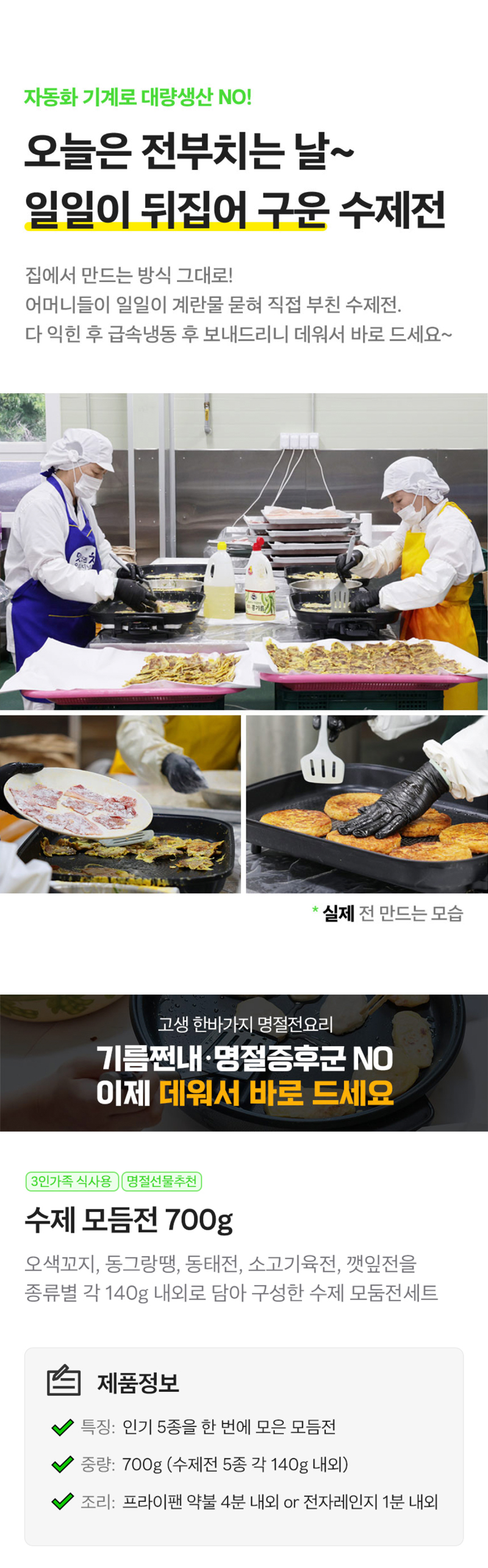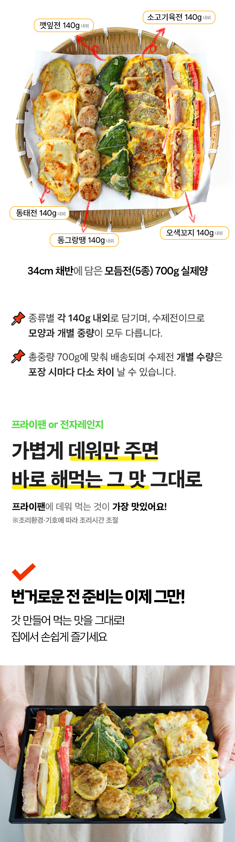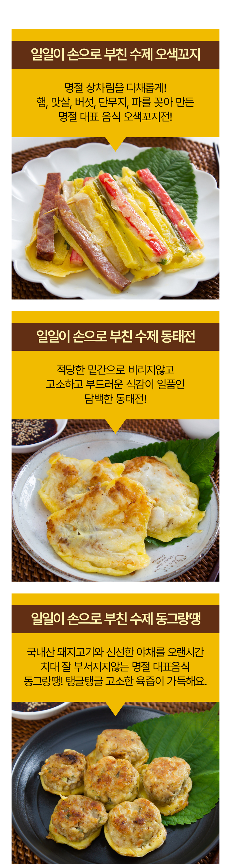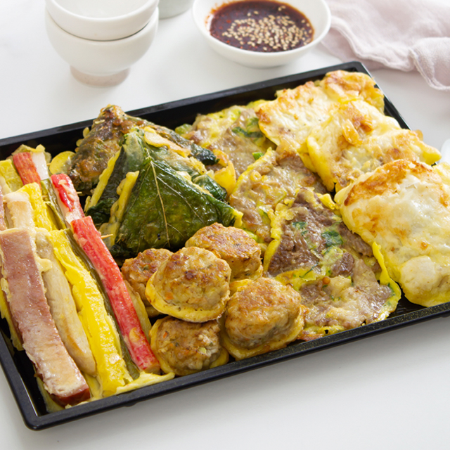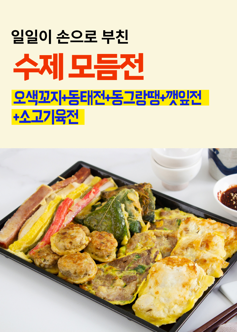 일일이 손으로 부친 수제 모듬전(오색꼬지+동태전+동그랑땡+깻잎전+소고기육전)
