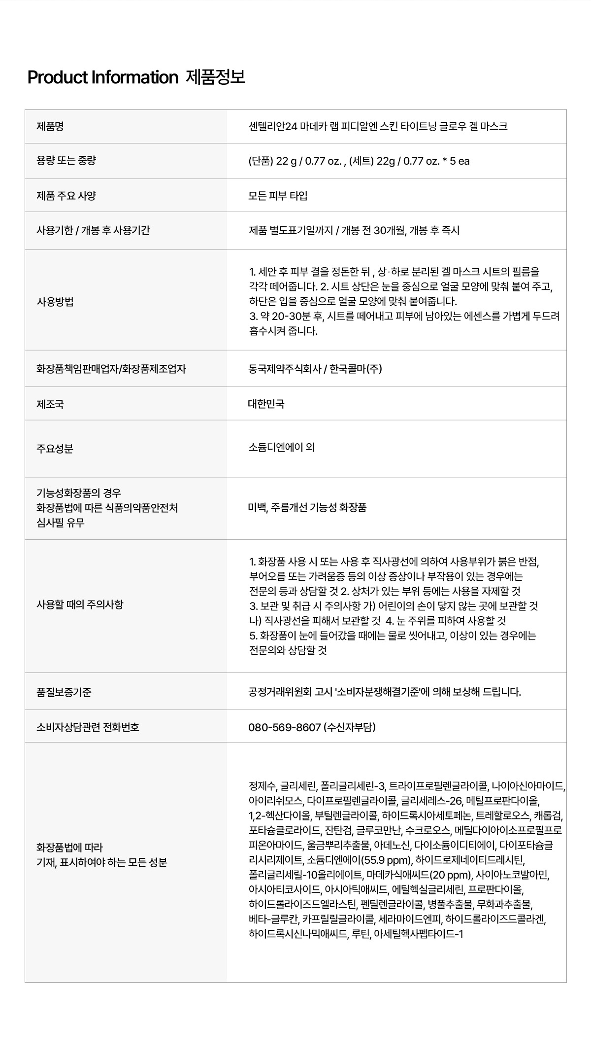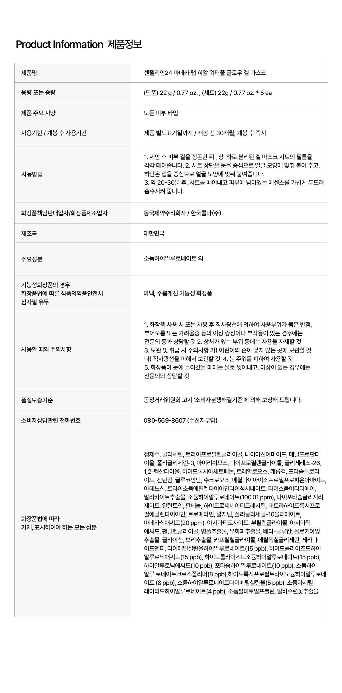 [동국제약] 센텔리안24 마데카랩 글로우 겔마스크 2박스 (히알워터풀/피디알엔 스킨 타이트닝 중 선택가능)