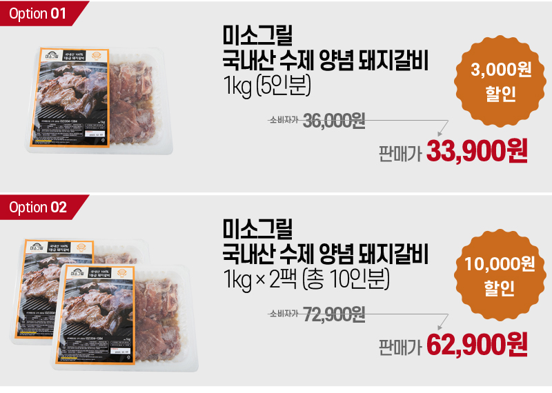 | 제품명 | 미소그릴 국내산 수제 양념 돼지갈비 |