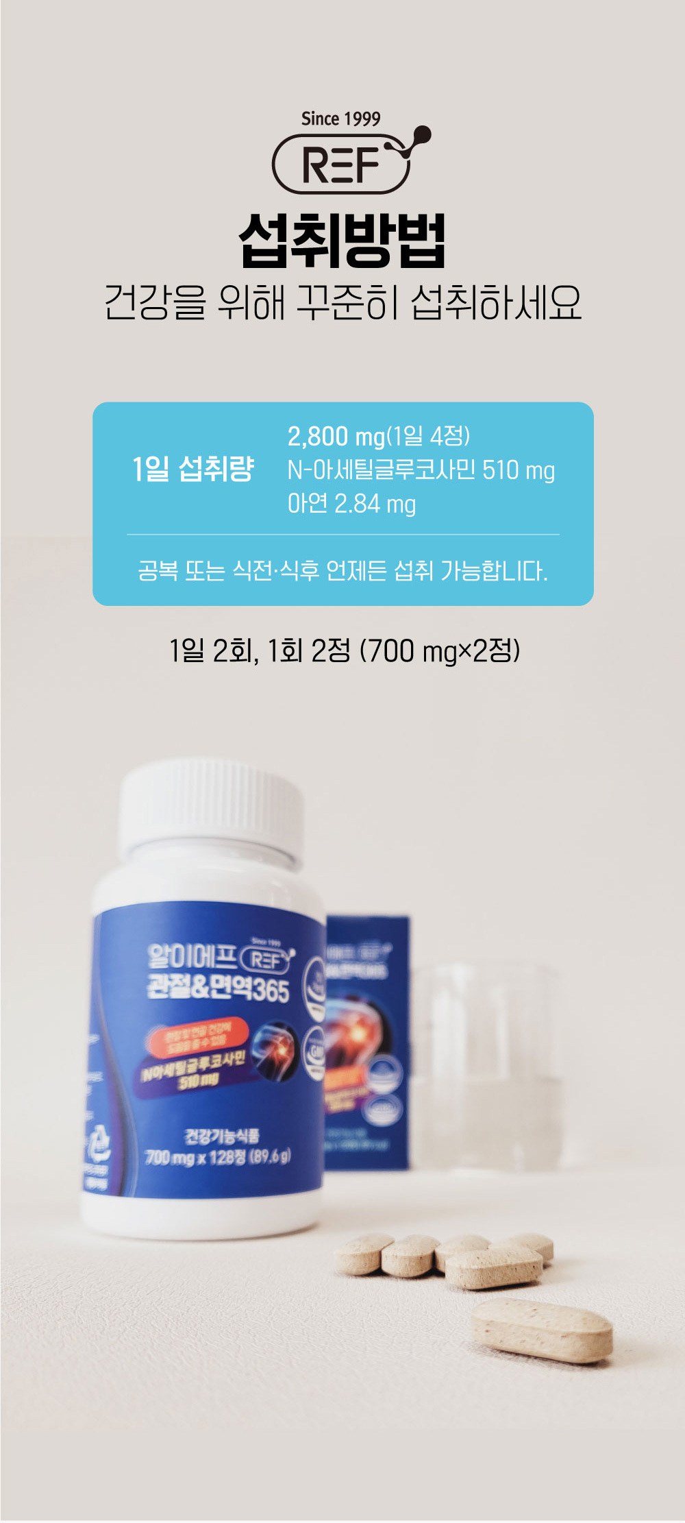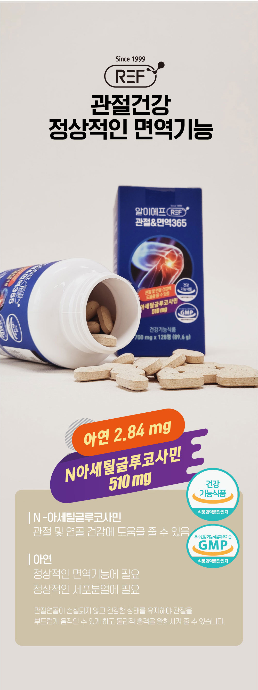 | 기능정보 | 아연 : 정상적인 면역기능에 필요, 정상적인 세포분열에 필요 / N-아세틸글루코사민 : 관절 및 연골 건강에 도움을 줄 수 있음 |