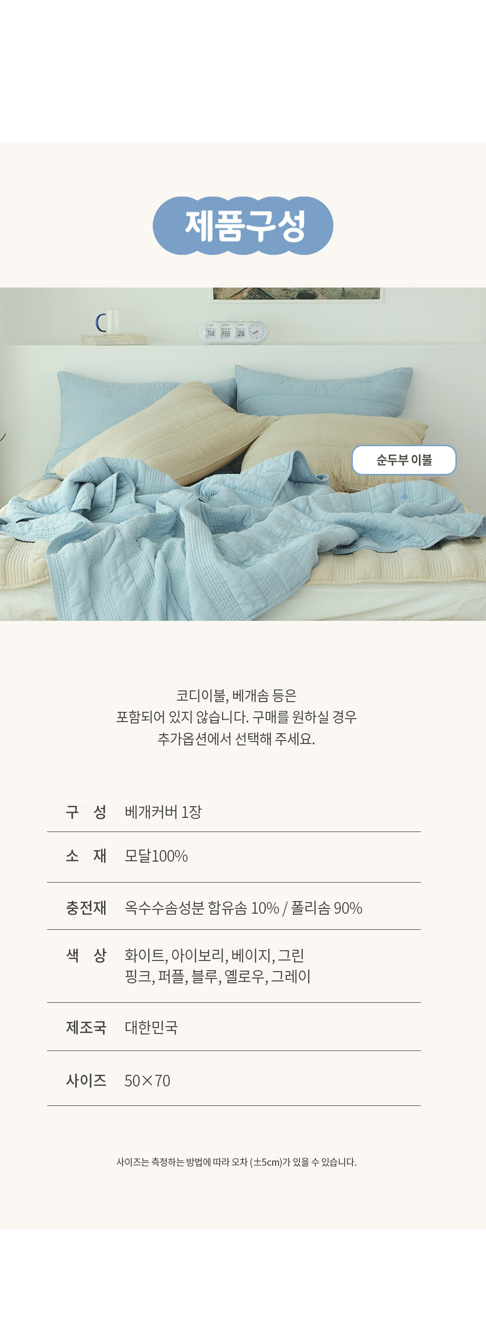 | 색상 | 베개커버,이불:그레이/화이트/아이보리/베이지/그린/핑크/퍼플/블루/옐로우 |