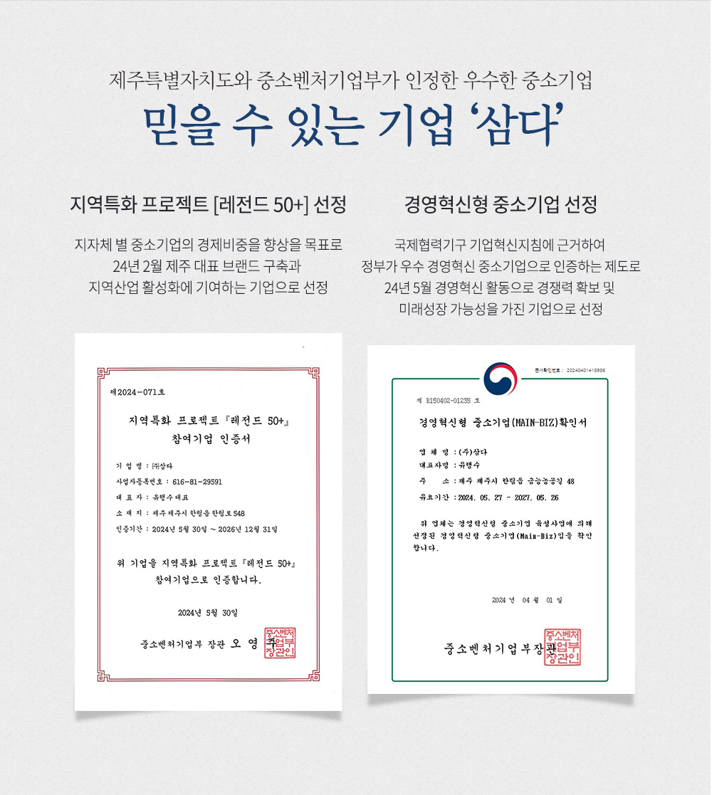 | 생산자 | (주)삼다 / 제주특별자치도 제주시 한림읍 금능농공길 48 |