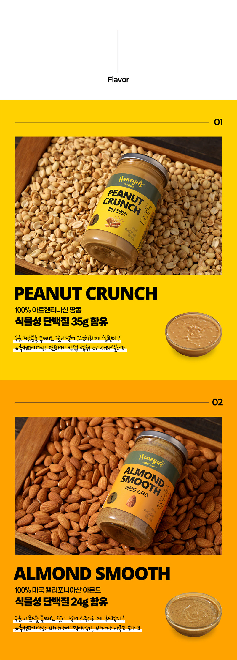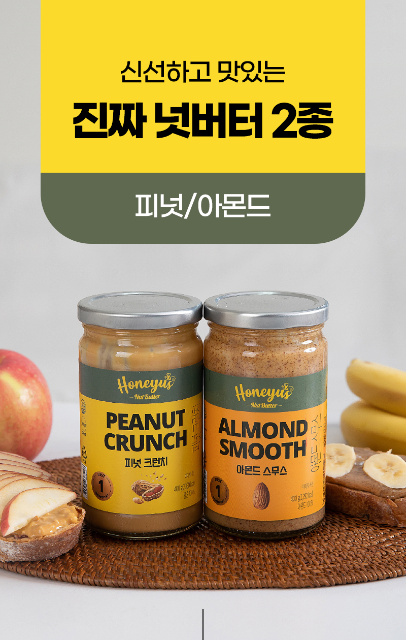 - home > 간식/음료/양념 > 면/잼/양념/오일 > 잼/오일/소스/장류 > 허니어스 피넛버터/아몬드버터 2병 세트