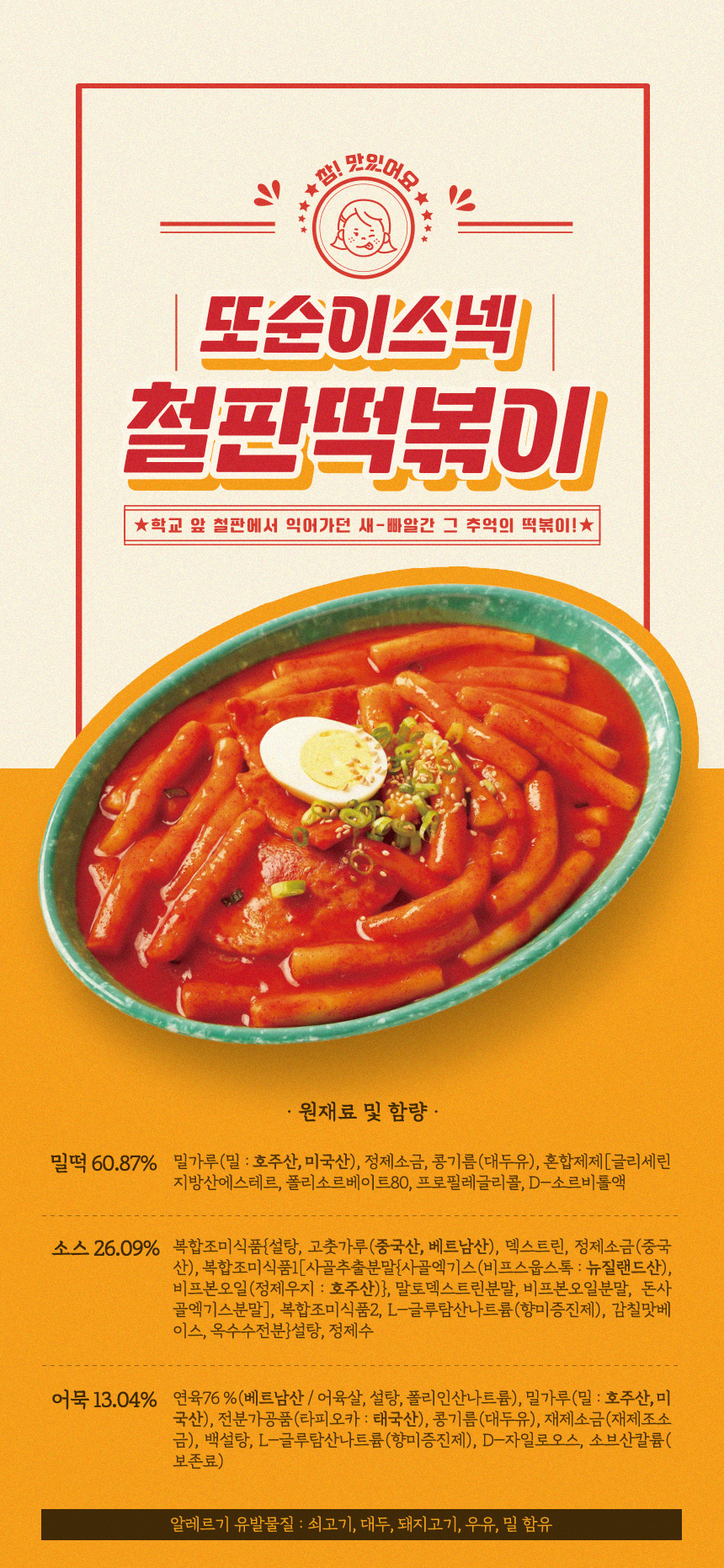 | 제품명 | [일주일특가]학교 앞 추억의 맛이 그대로~또순이스넥 철판떡볶이 (3팩/5팩/10팩 중 선택) |
