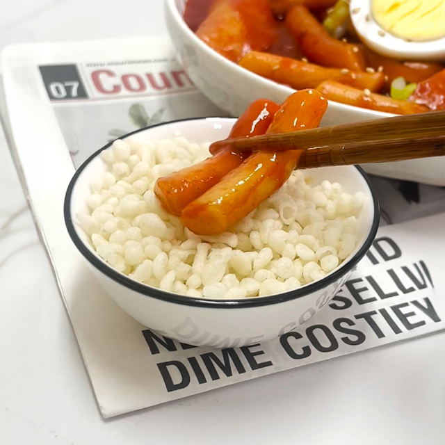 | 원재료명 및 함량 | 밀떡48.78%[밀가루(밀/호주산)98.77%,정제소금],소스24.39%(설탕,고추장{물엿,소백분(밀:미국산, 중국산),천일염(호주산),기타과당,양조간장원액,L-글루탐산나트륨(향미증진제)},향신료조제품(고추씨(인도산),복합조미식품2 ,마늘,대파,소스1,파프리카추출색소,복합조미식품3,복합조미식품4,복합조미식품5,소스2,발효식초,복합조미식품6,혼합제제 {말토덱스트린,카라멜색소IV}],어묵21.95%[냉동연육63.76%{외국산:베트남,인도네시아,국산 등/어육:93.7%,D-솔비톨,설탕: 6%,산도조절제:0.3%},밀가루(미국,호주),당근,대파,식용유(대두유),정제소금,L-글루탐산나트륨(향미증진제),D-자일로오스, 글루코노-,-락톤,소브산칼륨(보존료),인산염혼합제제,사카린나트륨제제(감미료)],과자류(덴가스나미)4.88%,(소맥분(밀),식용유 (카놀라유),식염,향미증진제(L-글루탐산나트륨) |