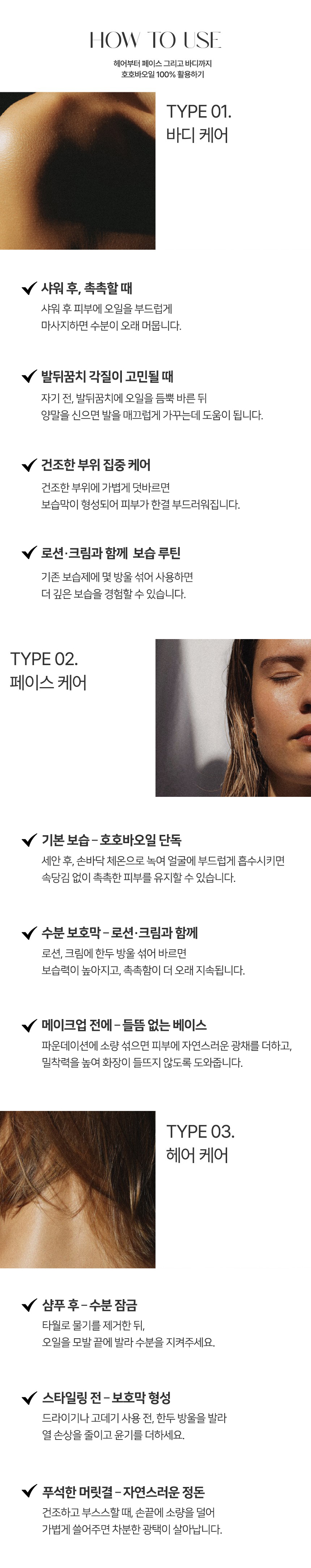 사용방법 | 필요 부위에 적당량을 덜어 사용합니다. 피부 타입과 사용 목적에 따라 다양한 활용이 가능합니다. |