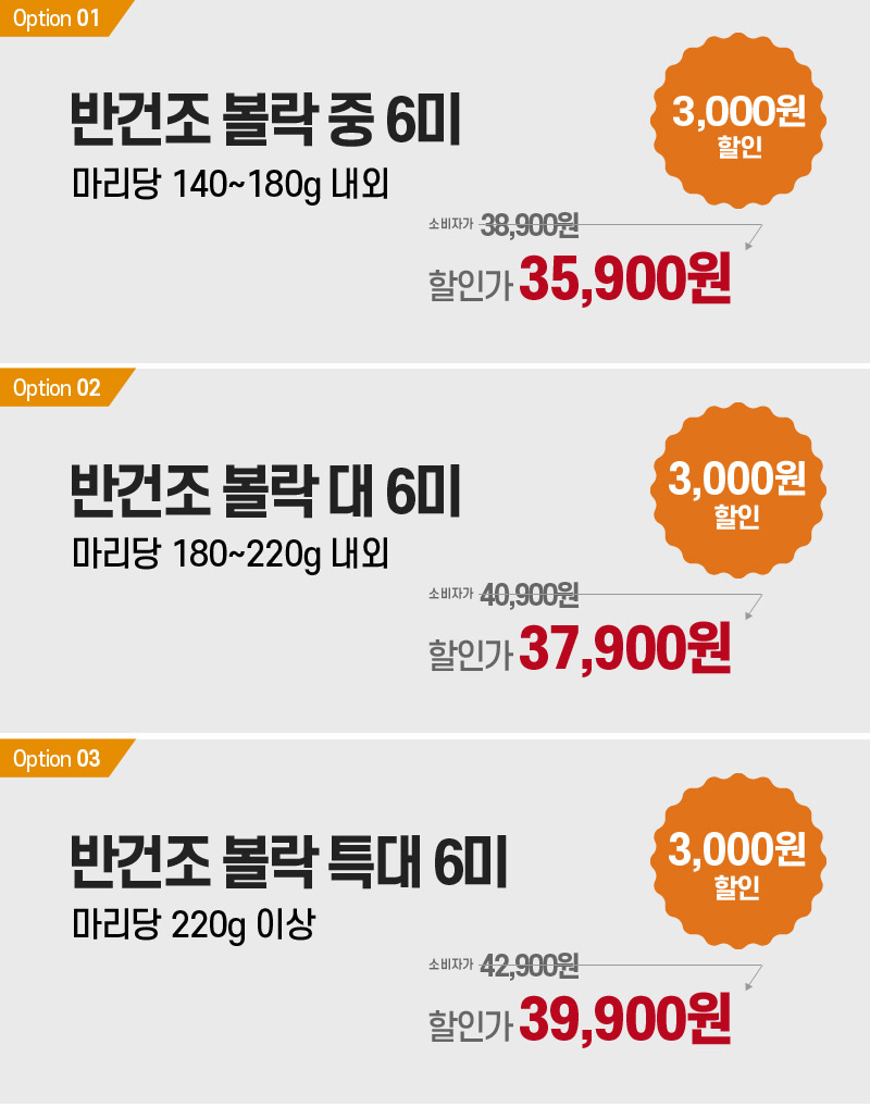 | 상품구성 | ●볼락: 중 6미, 대 6미, 특대 6미 |