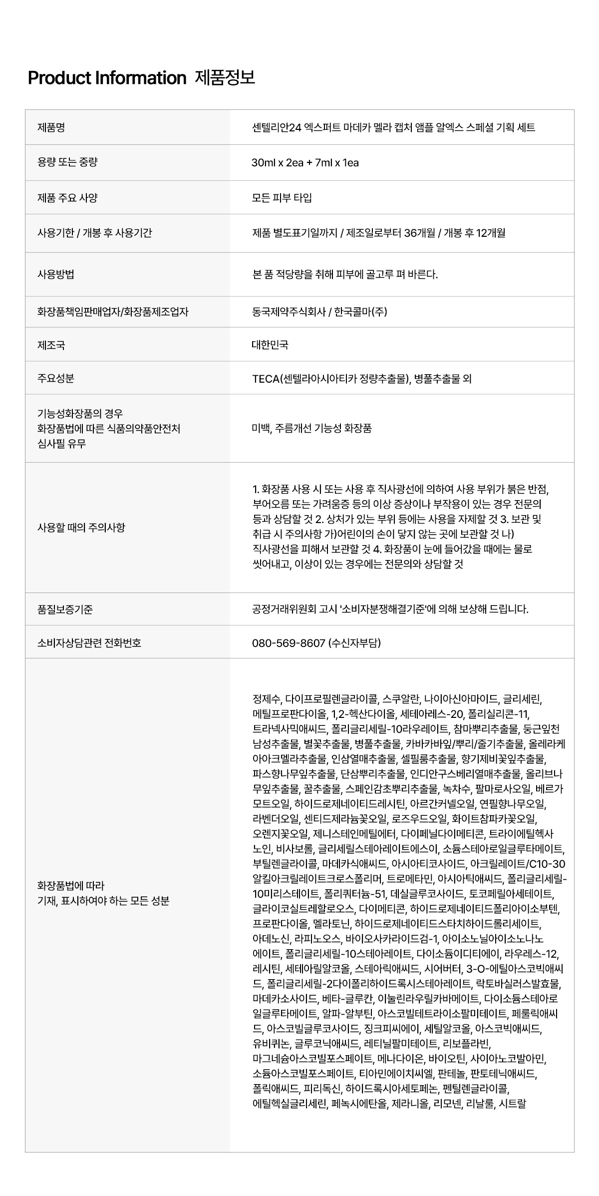 | 내용물의 용량 또는 중량 | [동국제약] 엑스퍼트 마데카 멜라 캡처 앰플 알엑스 30ml 2개+7ml 기획세트 |
