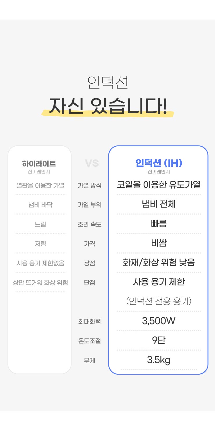 | 정격전압, 소비전력 | 220~240V~, 50~60Hz / 3,500W (좌존: 2000W / 우존: 1500W) |